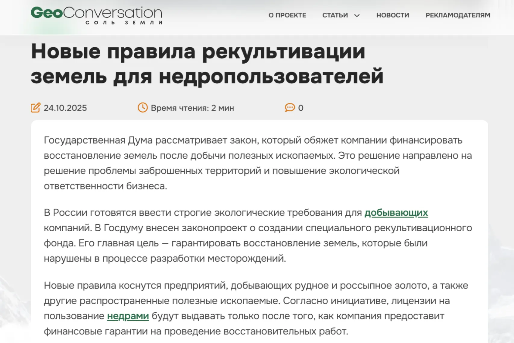 Я всегда говорю: давайте делать всё с умом. У нас есть Институт биологических проблем Севера — это их профиль. Пусть именно они разработают региональные нормы рекультивации, которые учитывают особенности наших территорий. Мы, недропользователи, готовы это оплатить. Ведь куда разумнее направить деньги на реальные исследования, чем на формальное соблюдение мертвых правил.