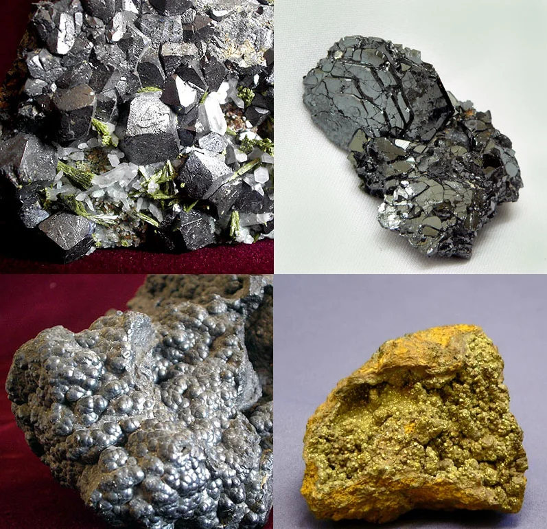 Чаще всего это оксиды, гидроксиды и карбонаты: магнетит, гематит, гетит, сидерит и их сочетания. По доминирующему минералу руды и получают свои названия, а когда говорят о видах железной руды, обычно имеют в виду различия в минералогическом составе.